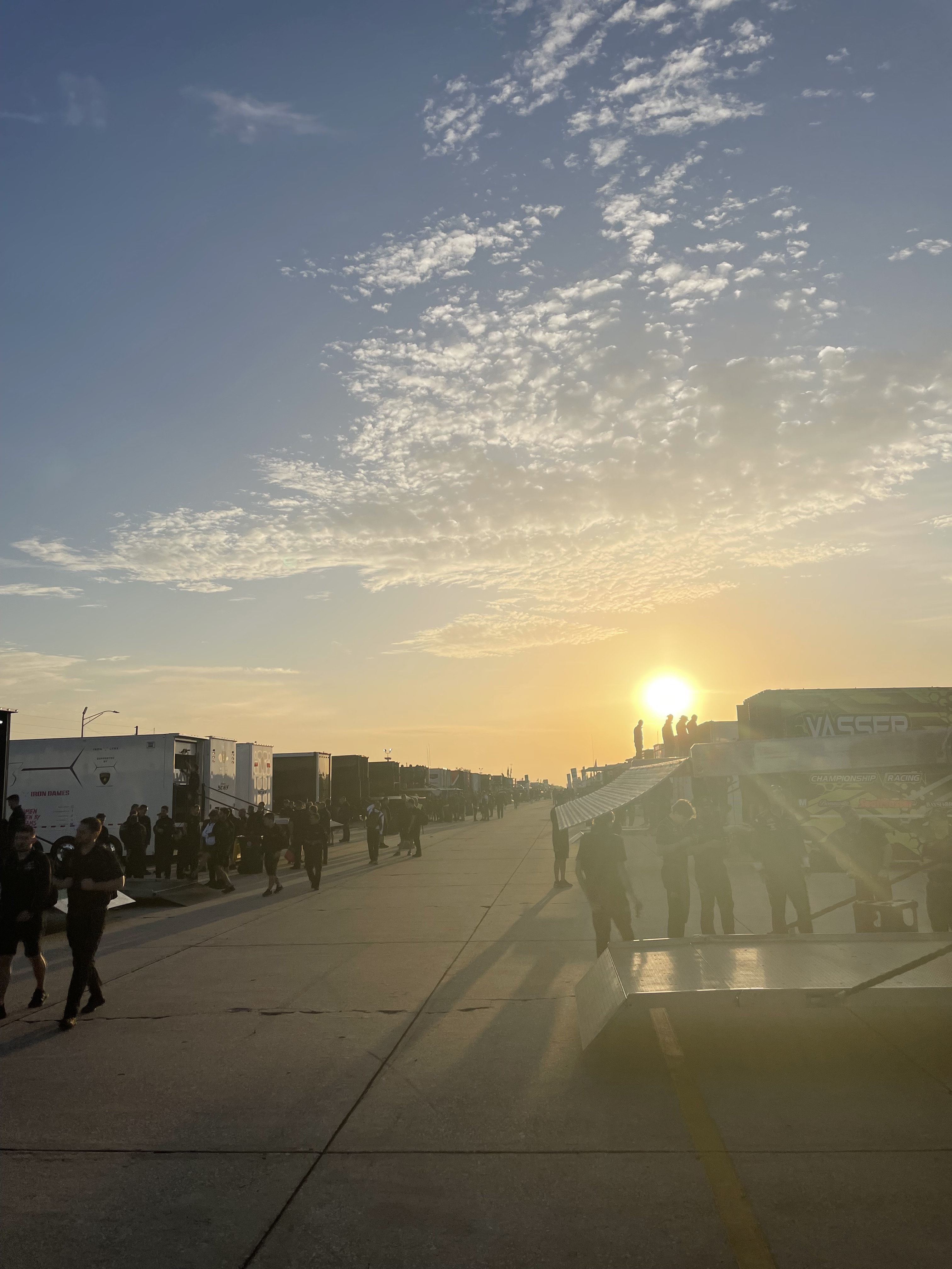 Sebring is quite the historic race track. Built on a World War II airport back in the 60s, it is flat, vast, not a lot of amenities, and so much concrete that during the day you just bake in the Florida sun. Setup was quick as everyone lends a hand and there is none of the “thats not my job” garbage that I have heard will tend to happen in some teams. We basically set up two locations with he “garage” being a large tent that comes off of the trailer and the pit lane which is totally built on site and amazingly erected thanks to the coordination of Kyle.